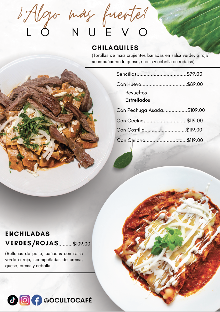 Welcome to Oculto Cafe, a hidden gem nestled in Vertiz Narvarte, Ciudad de Mexico. This charming cafe is a must-visit for food lovers and coffee aficionados alike. The standout dish, red chilaquiles with ribs, has received rave reviews for its savory flavor and generous portions, promising a memorable experience with every bite.
